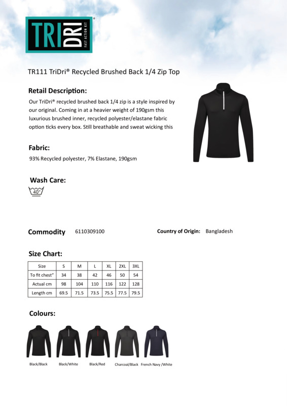 TriDri® recycled long sleeve brushed back ¼ zip top