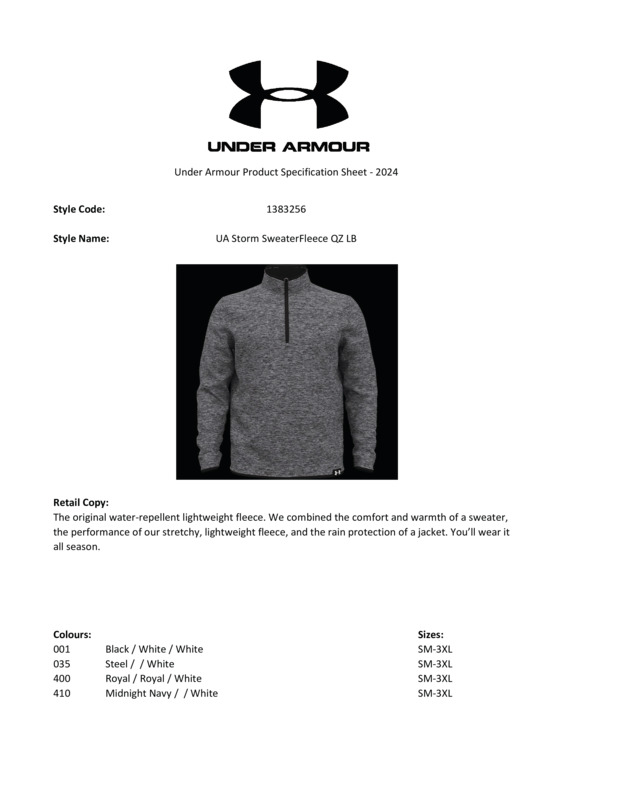 UA storm sweaterfleece QZ LB – the original, water-repellent, lightweight fleece. We combined the comfort and warmth of a sweater, the performance of our stretchy, lightweight fleece, and the rain protection of a jacket. It has a fluorine-free, water-repellent treatment, so you can wear it all season.The original, water-repellent, lightweight fleeceWe combined the comfort and warmth of a sweater, the performance of our stretchy, lightweight fleece, and the rain protection of a jacketIt has a fluorine-free, water-repellent treatment, so you can wear it all season.Age Group: AdultFabric: 88% Polyester cationic, 12% PolyesterGender: MalePlus Size: YesProduct Type: FleeceSize Range: S–3XLSizing To Fit: S 34/36″ M 38/40″ L 42/44″ XL 46/48″ 2XL 50/52″ 3XL 52/54″Tag: Sewn TagWashing Instructions: Machine wash cold with similar colours. Do not use softeners. Use only non-chlorine bleach when needed. Tumble dry low. Do not iron. Do not dry clean.Weight (GSM): 250g]]>