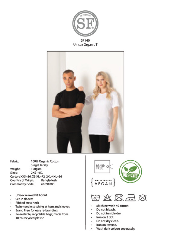 Stripped back to basics, this unisex T is made from 100% organic cotton for a more sustainable future. Tear-out label for easy rebranding.Unisex relaxed-fit t-shirtSet-in sleevesRibbed crew neckTwin-needle stitching at hem and sleevesBrand-free, for easy rebrandingResealable, recyclable bags; made from 100% recycled plasticBSCI certifiedOeko-Tex certifiedSEDEX certifiedVegan certified.Accreditations: Amfori BSCI|Oeko-Tex|Sedex|Peta Approved VeganAge Group: AdultFabric: 100% Organic cottonGender: UnisexPlus Size: YesProduct Type: T-ShirtsSize Range: XXS to 4XLSizing To Fit: XXS 32/34″ XS 34/36″ S 36/38″ M 38/40″ L 42″ XL 44/46″ 2XL 48″ 3XL 50/52″ 4XL 54″Tag: TaglessWashing Instructions: Machine wash 40° cotton. Do not bleach. Do not tumble dry. Iron on 2 dot. Do not dry clean. Iron on reverse. Wash dark colours seperately.Weight (GSM): 150gsm]]>