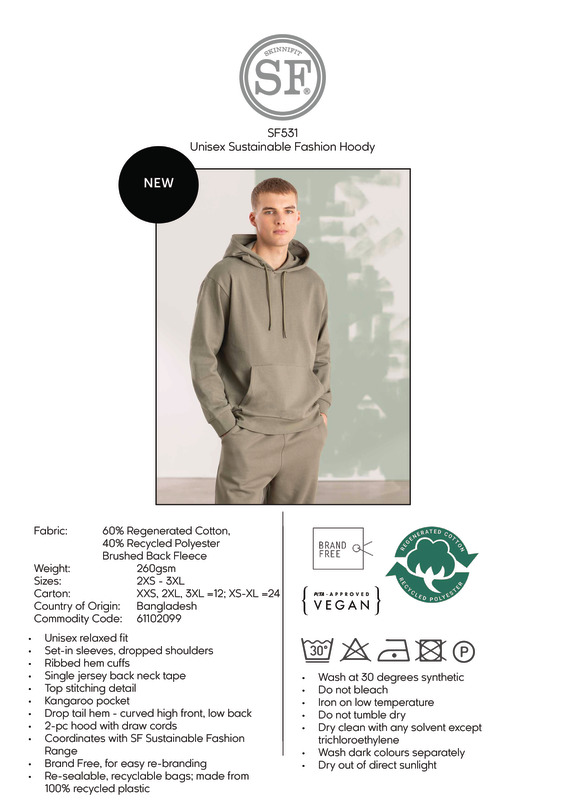 A classic, relaxed-fit, unisex hoodie – elevated, thanks to the flattering curved hem. Made from a mixture of regenerated cotton and recycled polyester, the sustainable generation is here. Brand-free, for easy rebranding.Unisex relaxed-fit hoodieSet-in sleeves, dropped shouldersDroptail hem – curved high front, low backRibbed hem cuffsSingle Jersey back neck tape and hood liningDyed-to-match drawcordsKangaroo pocketTonal topstitching detailBrand-free, for easy rebrandingResealable, recyclable bag; made from 100% recycled plasticOEKO-TEX, amfori BSCI, SEDEX, Peta Approved Vegan and Global Recycled Standard certified.Accreditations: Oeko-Tex|Amfori BSCI|Sedex|Peta Approved Vegan|Global Recycled StandardAge Group: AdultFabric: 60% Regenerated cotton, 40% Recycled polyesterGender: UnisexPlus Size: YesProduct Type: HoodiesSize Range: XXS–3XLSizing To Fit: XXS 32/34″ XS 34/36″ S 36/38″ M 38/40″ L 42″ XL 44/46″ 2XL 48″ 3XL 50/52″Tag: TaglessWashing Instructions: Machine wash 30 degree synthetic. Do not bleach. Iron on low. Do not tumble dry. Dry clean with any solvent except Trichloroethylene.Weight (GSM): 260gsm]]>