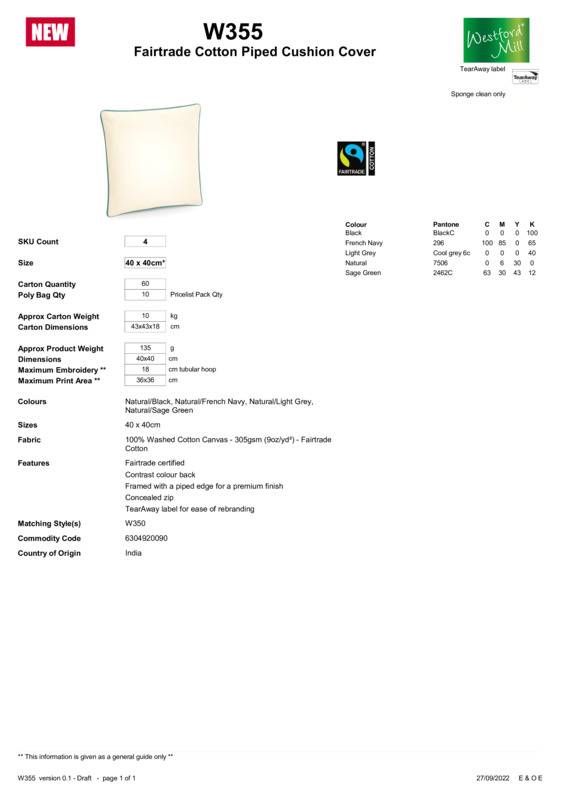 A house becomes a home with Westford Mill. Our homeware collection is thoughtfully designed to help you create a beautiful, curated space that feels like your very own sanctuary. Choose from a palette of soft, neutral hues to perfect a design scheme that’s truly you. This cushion cover’s contrast piping and block colour accent provide a premium finishing touch, whatever your aesthetic.100% Washed cotton canvas, 305gsm (9oz/yd²) – Fairtrade cottonFairtrade certifiedContrast colour backSelf-coloured concealed zipFramed with a piped edge for a premium finishTearAway label for easy rebranding.Accreditations: FairTradeFabric: 100% Washed cotton canvas – Fairtrade cotton, 305gsmGender: UnisexPlus Size: NoProduct Type: Cushion CoversSize Range: One sizeSizing To Fit: One sizeTag: Tear-awayWashing Instructions: Sponge clean only.Weight (GSM): 135g]]>