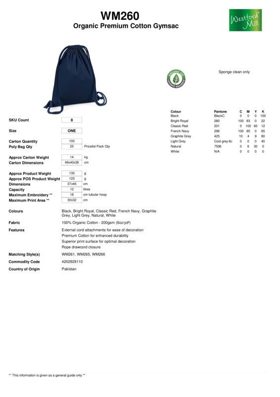 Every retail collection needs a multi-purpose drawstring bag and this organic premium cotton gymsac provides fashion and function in a way that is simple, yet stylish. This sporty staple features a superior print surface ideal for decoration.Superior print surface for optimal decorationExternal cord attachments for ease of decorationPremium cotton for enhanced durabilityRope drawcord closure.Accreditations: Organic 100 Content StandardAge Group: AdultBag Capacity: 12 LitresBag Dimensions: 37 x 46cmEmbroidery Information: 18 Tubular hoopFabric: 100% Organic cottonGender: UnisexPlus Size: NoPrint Area: 30 x 32cmProduct Type: BagsSize Range: OnesizeSizing To Fit: One sizeTag: Sewn TagWashing Instructions: Sponge clean only.Weight (GSM): 120g]]>
