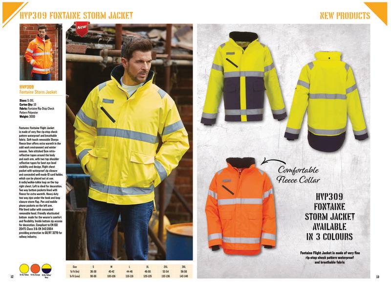 Hi-vis Fontaine storm jacket is nicely made with functions in mind, such as extra warmth, breathable quality, windproof and waterproof, as well as plenty of great features and benefits such as adjustable drop tail back, waterproof zip chest pocket with ID card holder etc. Ideal for Executives, Managers, Team Leaders etc.Fontaine storm jacket is made of very fine check pattern waterproof and breathable fabricSoft-touch removable pile liner offers extra warmth in the cold work environment and winter seasonTwin stitched 5cm retro-reflective tapes around the body and each arm, with two top shoulder reflective tapes for best eye level visibility and designRight chest pocket with waterproof zip closure and concealed well-made ID card holder, which can be placed out at useA radio/walkie-talkie loop on the top right chestLeft chest is ideal for decorationTwo way bottom pockets lined with fleece for extra warmthHeavy duty two way zips under the hook and loop fastening closure storm flapPen and mobile phone pockets on the left armPile lined collar with concealed removable hoodAdjustable drop tail bottom for extra protectionInside bottom zip access for decorationCompliant to EN ISO20471 Class 3 & EN342:2004 providing protection against cold, and Orange conforms to RIS-3279-TOM for railway industry.Age Group: AdultFabric: 100% PolyesterGender: UnisexPlus Size: YesProduct Type: JacketsSize Range: S to 3XLSizing To Fit: S 36/38” M 40/42” L 44/46” XL 48/50” 2XL 52/54” 3XL 56/58”Tag: Sewn TagWashing Instructions: Maximum washing temperature 40ºC. Normal process & wash as synthetics. No bleaching allowed. Do not iron. Do not tumble dry or wring. Do not dry clean, cold rinse & short spin. No professional dry cleaning in perchloroethylene or hydrocarbons. Do not wash in biological powder. 25 max. wash cycle.Weight (GSM): Fontaine check pattern 300D]]>